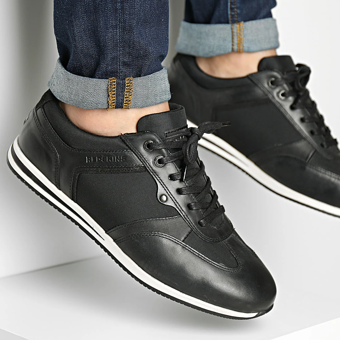 • Baskets urbaines tendance en mesh et cuir véritable avec logo Redskins