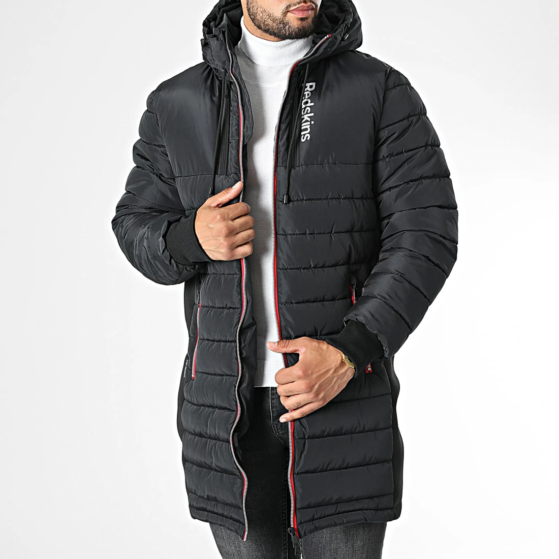 • Doudoune capuche chaude tendance avec visuel Redskins réfléchissant appliqué
