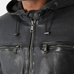 Bon marché 😍 Veste Cuir Capuche Barcelona Bleu Marine de Redskins ✔️