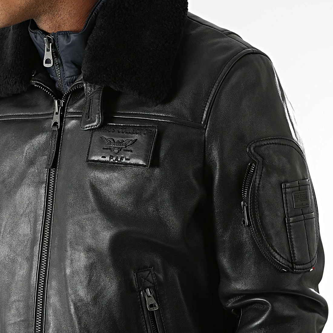 • Multipoche zippée sur la manche gauche avec plaque métallique Redskins et drapeau tricolore cousu