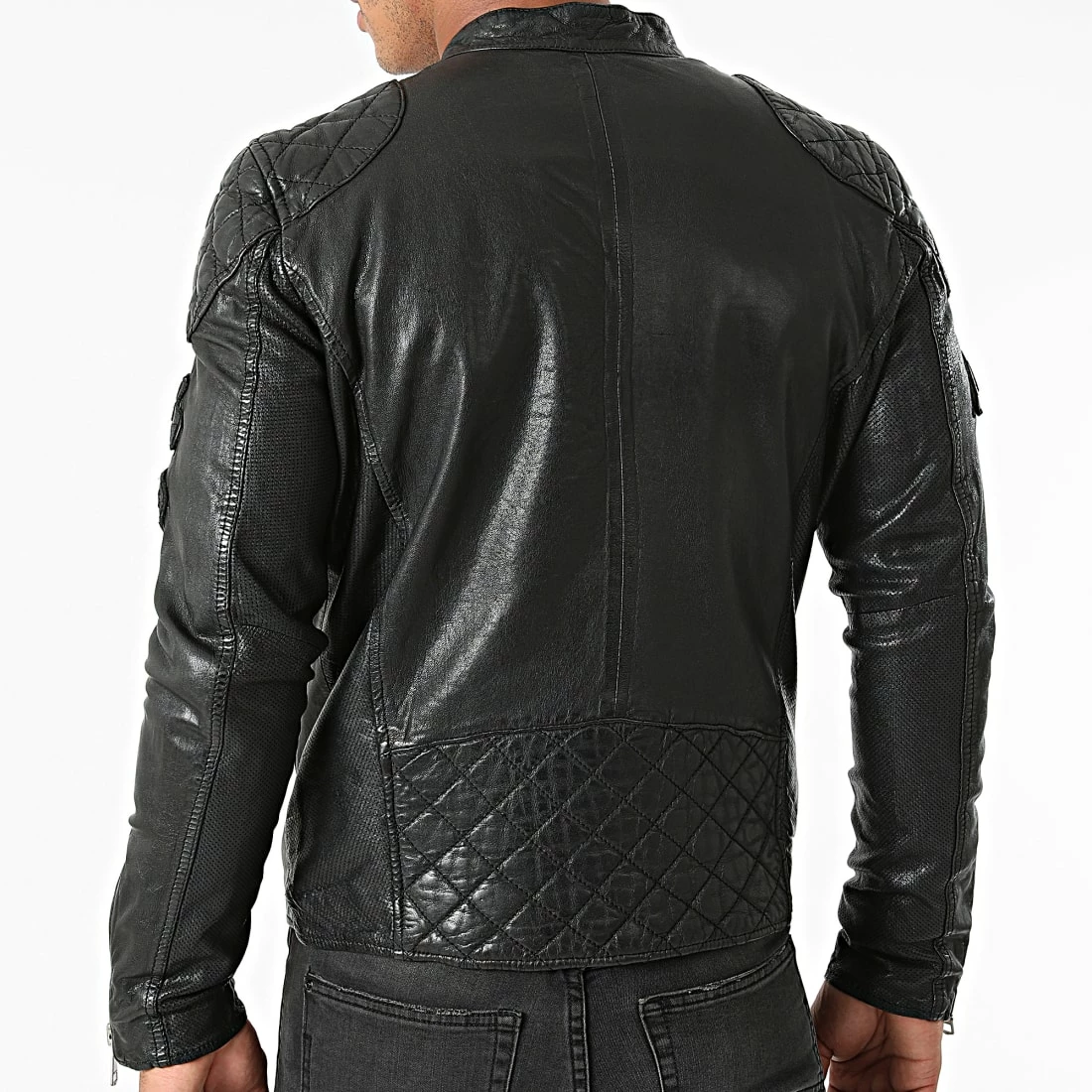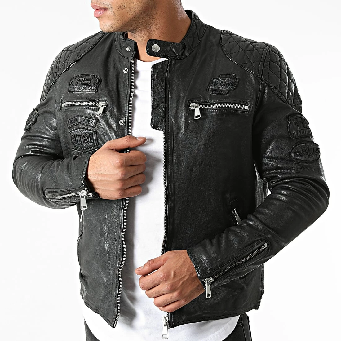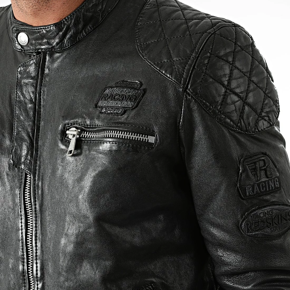 • Veste en cuir véritable brodée patchs Redskins ton sur ton
